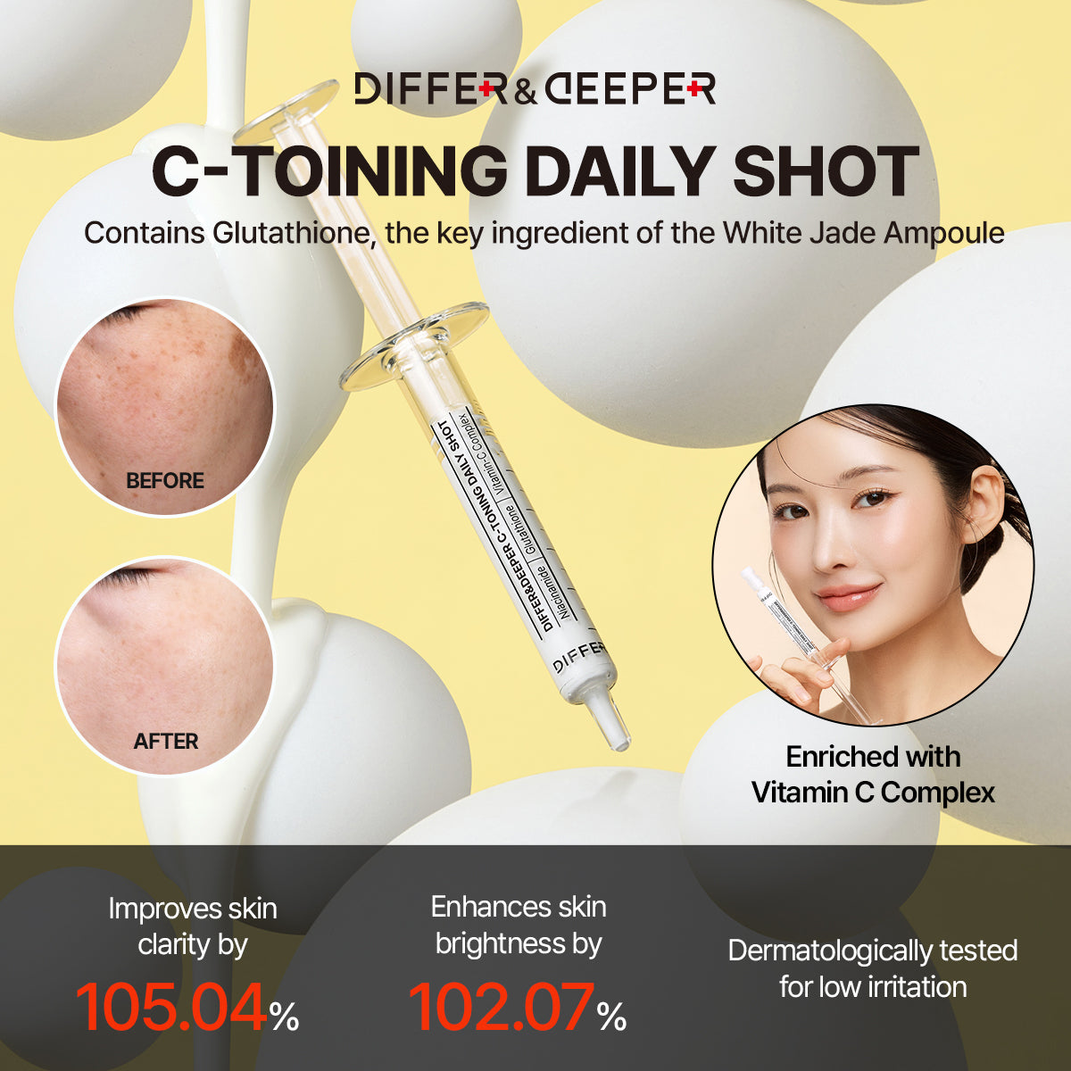 Our unique Differ & Deeper method delivers lasting brightness without artificial pigments, for a natural, sustained glow, not just a one-time tone-up.